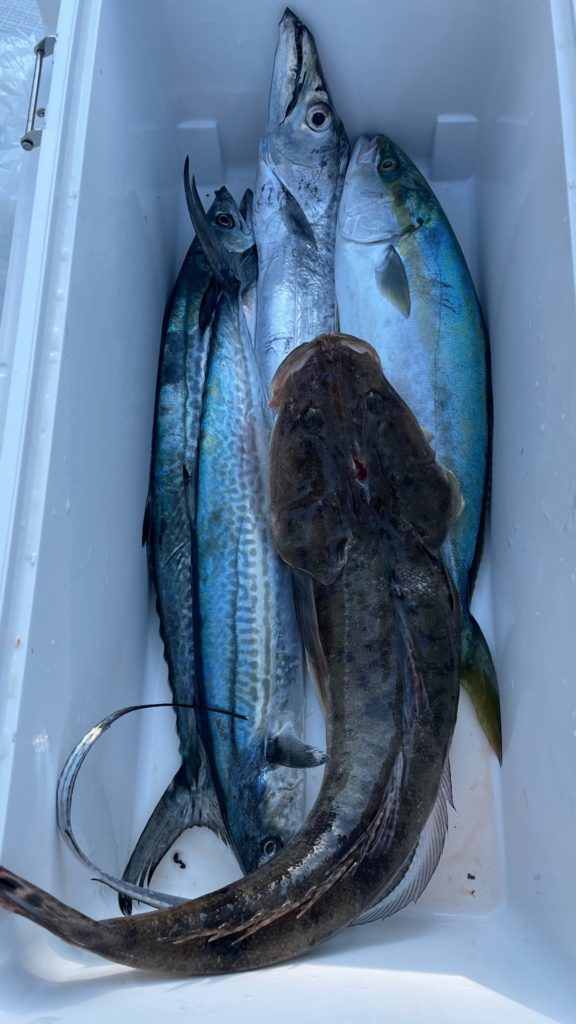 珍しく凪日和が続いて朝イチからダッシュ💨 ポイントの様子見すると大サバや大アジの匂いがする反応なのでブチ込んでみると… やはり大サバヒット🎣 ほんで大アジもヒット🎣 ハマチもヒット🎣 痛恨のバラシもありながら💦 メジロま