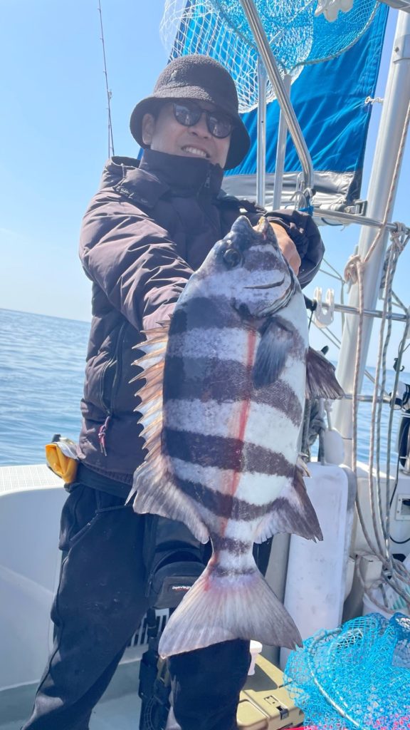今回は海況良さげな日で急遽チャーターいただきダッシュ💨 そろそろ青地を引っ張り出したいところ🤔 前回は顔見せ程度だったのでやはり何か匂う🤔 まずは怪しい反応の辺りから流し込んでみると… 何かヒット🎣 更にあちこちでヒット