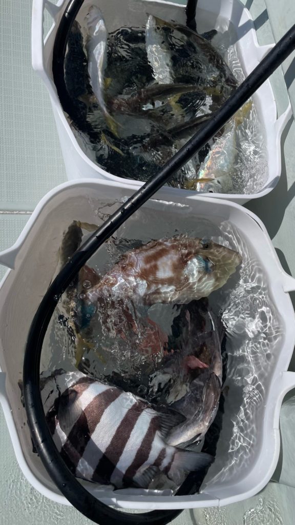 パート1ではウマヅラでスタートしましたがアタリ少なめ🤔 デカヅラ数枚確保してアジを打診してみると… ラッシュに入らず💦 デカ中アジサバ〜大アジ・チダイ・たまにウマヅラ🎣など拾えましたが苦戦の展開でした😓 パート2 ではな